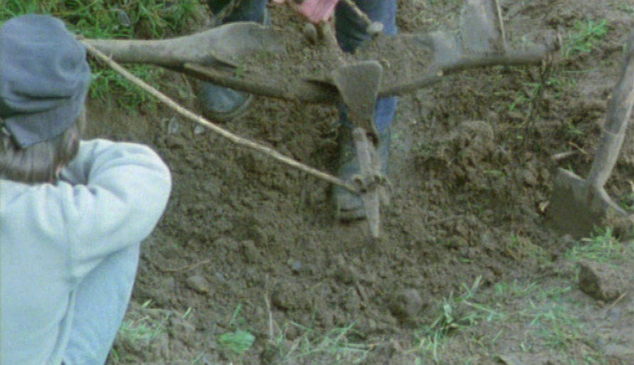 Struck by a series of images, especially considering the way the filmmaker had split them up and repeated them, utilising the same actions and objects through different cinematic techniques. In fact, this is mentioned in passing in Deleuze’s book on Foucault (Foucault having written at length on the Rivière case), as an example of productive disjunctions between image and text. Deleuze makes reference to the opening shots of a tree embedded in a boundary fence, which is combined with shuffling noises from an adjourning or commencing court session. Deleuze highlights the problems in dealing with the discrepancies between Rivière’s lucid and precise written (and spoken) account of the story and his actions as dramatised by the actors on screen – or, as both Deleuze and Foucault put it, between what is seen and what is articulated. Allois deals with this disjunction in interesting ways – not just in using voice-over, but repetitions of action – for example when Pierre is seen writing in his prison cell, his voice-over recounting that he was disturbed in his previous attempts to write out his experiences, he jumps up from his chair, sure that someone is behind him. The film immediately cuts to the ‘original’ version of that gesture, Pierre writing at a desk in the attic as his sister sneaks up behind him, his renewed (and recounted) startled jump and turn – an action efficiently doubled, even emanating from the same area of the frame. Allois also inserts still images, both from his own film and historical drawings, engravings and images from painting. Beyond these techniques, there is also an intereting correlation to reenactment, as the farmers are played by farmers, peasants are played by peasants, the only professional actors playing ‘outsider’ characters, in order to preserve the genuine discrepancies between two broad sensibilities and assumptions, which may or may not be upheld. In fact the whole film rests on this multi-faceted positioning, always showing a few slants on the same incidents, feeding in the context of an individual voice, a different physical or imagined perspective.